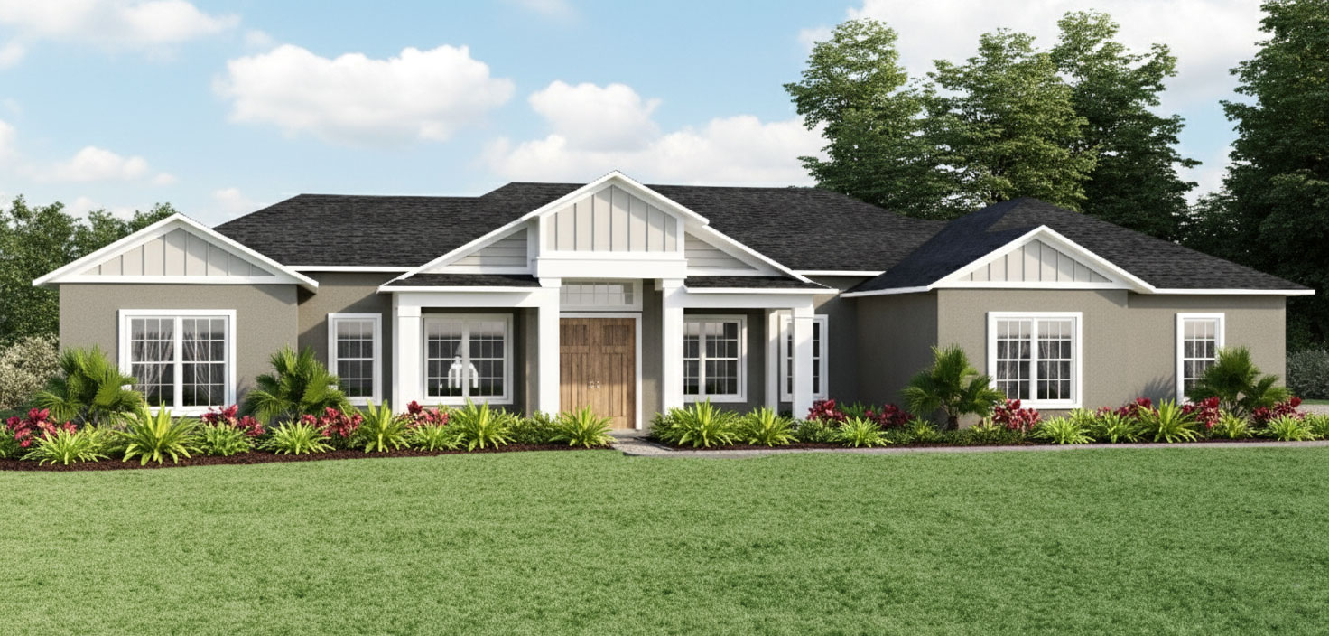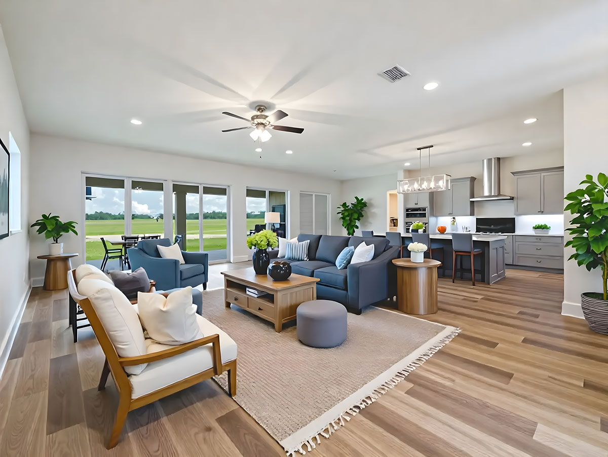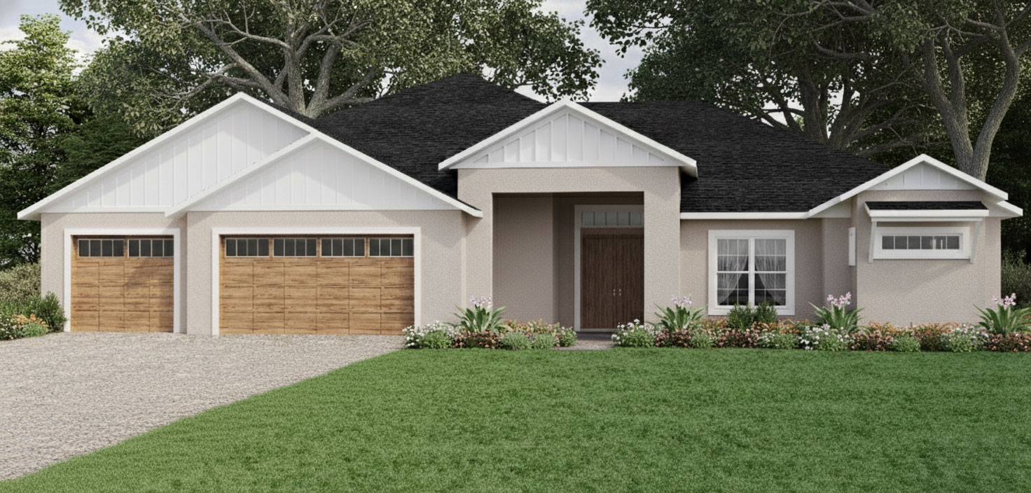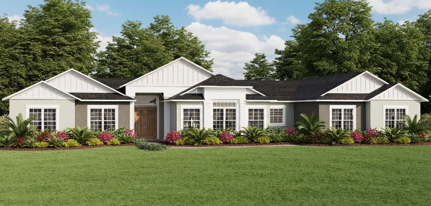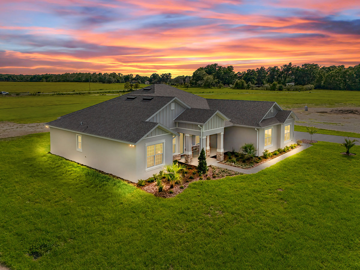 Nestled in a serene rural setting just 3 miles west of The Villages, these spacious 3+ bedroom homes sit on 1–2-acre home sites, combining privacy with convenience. Our homes all feature 3-car garages, unique open floor plans with high-end luxury finishes, which we offer as a standard in all of our models.